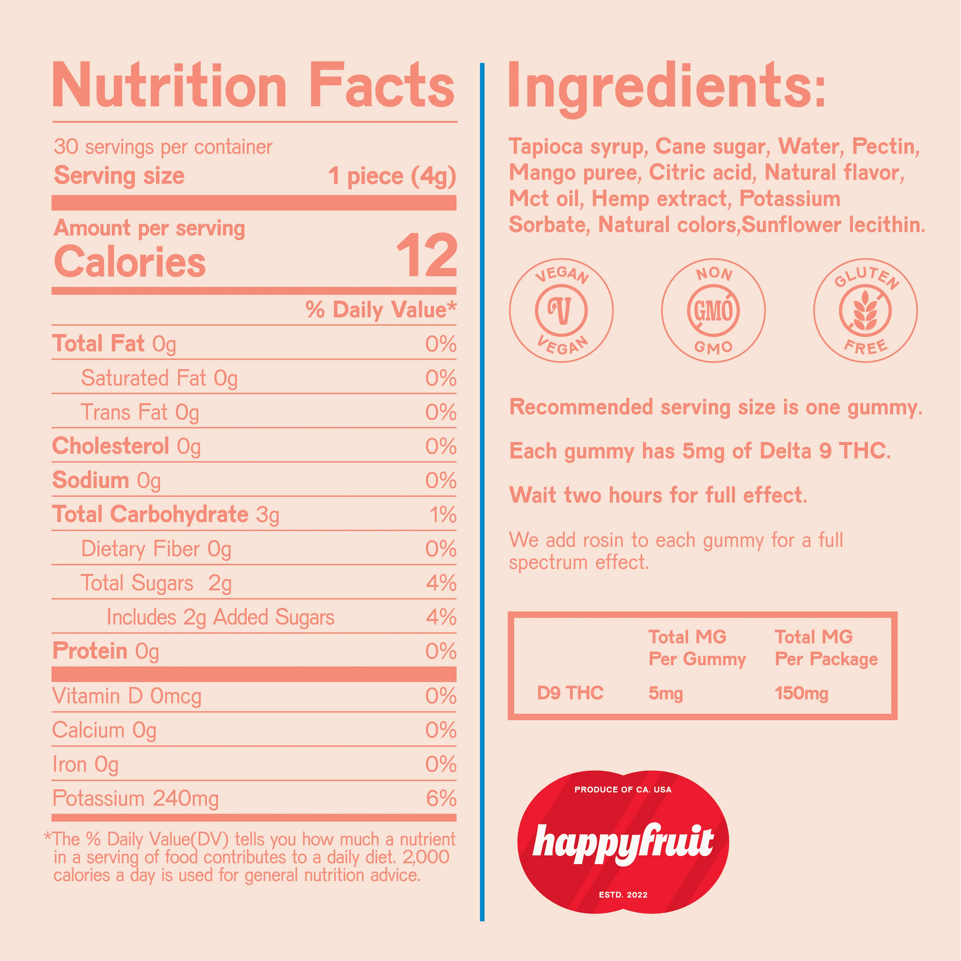 Tapioca Syrup, Cane Sugar, Water, Pectin, Fruit Puree, Citric Acid, Natural Flavor, MCT Oil, Hemp Extract, Potassium Sorbate, Natural Colors, Sunflower Lecithin