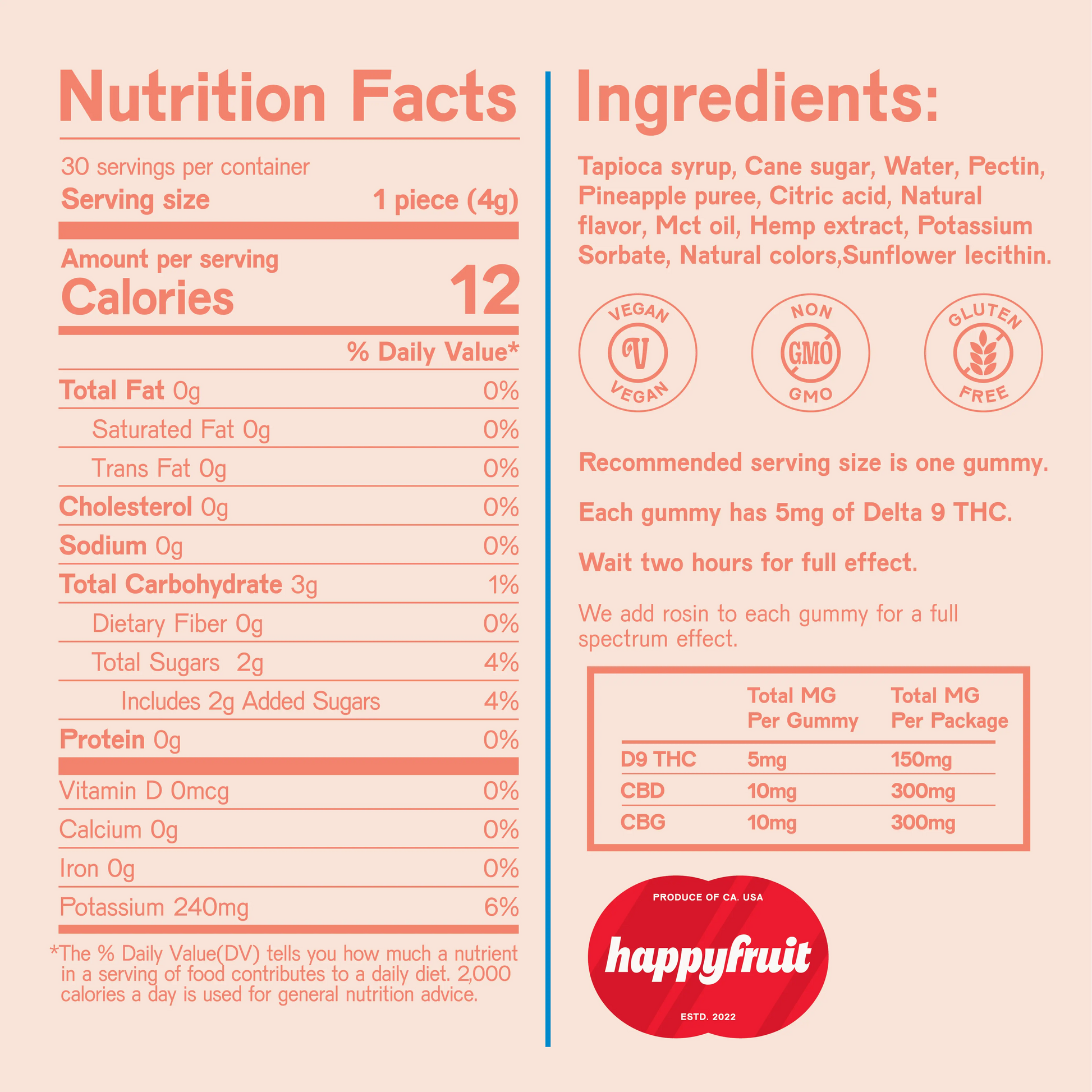 Tapioca Syrup, Cane Sugar, Water, Pectin, Fruit Puree, Citric Acid, Natural Flavor, MCT Oil, Hemp Extract, Potassium Sorbate, Natural Colors, Sunflower Lecithin